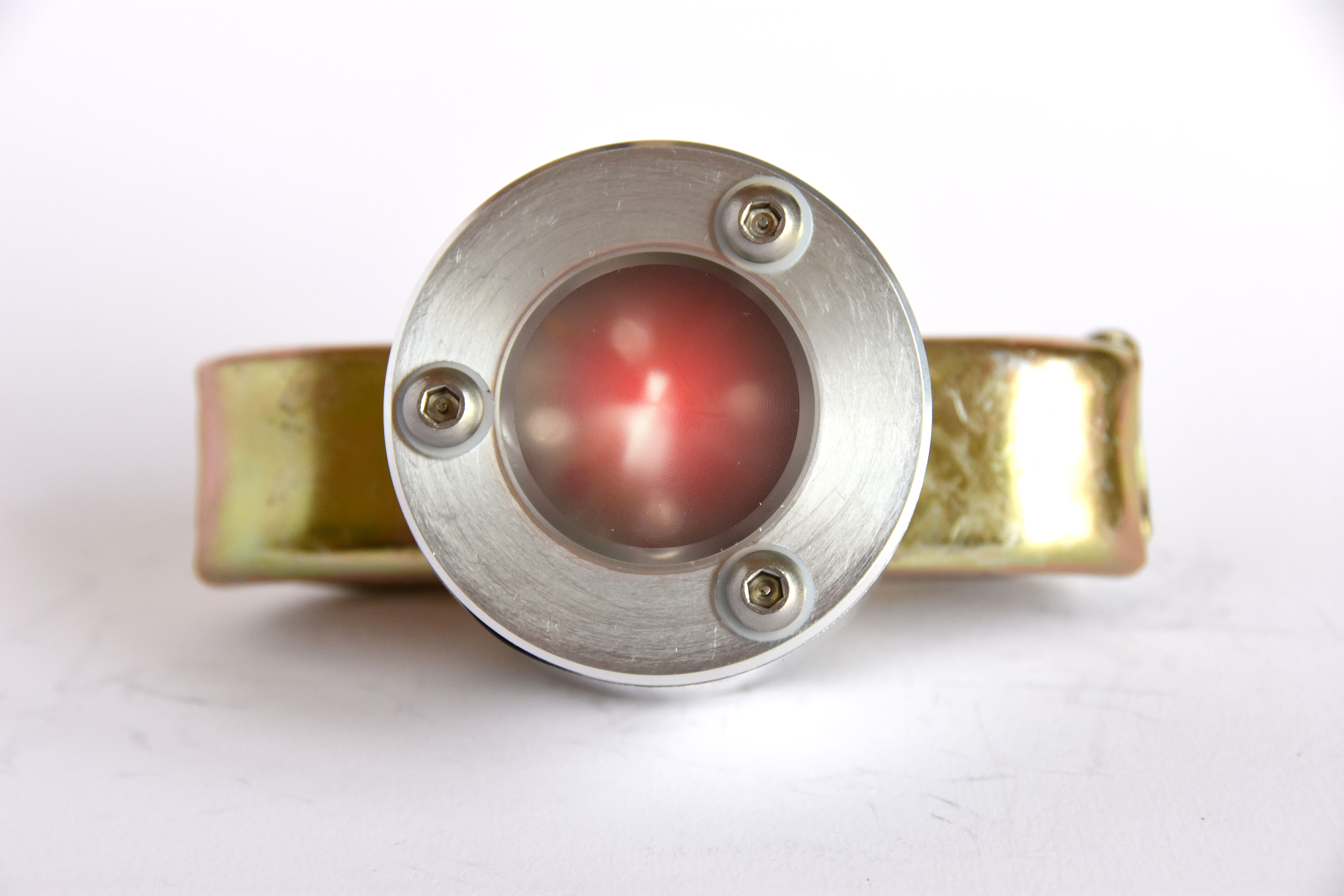 Robust & sustainable aluminium flashing battery powered light with multi-directional lens.